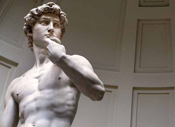 Sconvolto da turbinio erotico emotivo di fronte a tanta bellezza, l’ometto denudossi di fronte al David di Michelangelo a Firenze a restituire le sue nudità alla statua forse pensando “Son bello anch’io”?