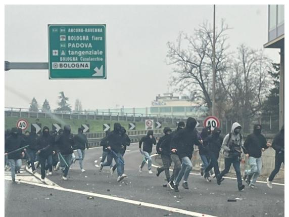 Gli ultras della Fiorentina erano diretti a Bologna mentre gli ultras della Roma viaggiavano verso Torino.