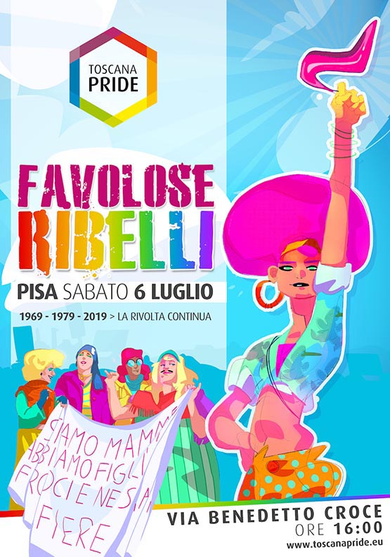 Favolosità e ribellione. Orgoglio e rivendicazione. Cinquanta anni dopo Stonewall e quarant’anni dopo il primo Corteo del Movimento Omosessuale Italiano che si è svolto proprio a Pisa, il manifesto del Toscana Pride 2019 è il simbolo di una nuova rivolta.