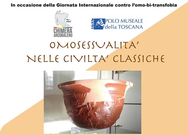 “Omosessualità nelle civiltà classiche” se ne parla al “Museo Archeologico Nazionale Gaio Cilnio Mecenate” di Arezzo il 17 maggio 2019 dalle ore 17.30. Protagoniste di questa conversazione a tema storico, che nasce dalla collaborazione tra Chimera Arcobaleno e il Polo Museale della Toscana, saranno Margherita Gilda Scarpellini, etruscologa, e Maria Gatto, direttrice del Museo Archeologico, moderate da Cristina Betti del comitato Arcigay Arezzo. L’ingresso è libero e gratuito.