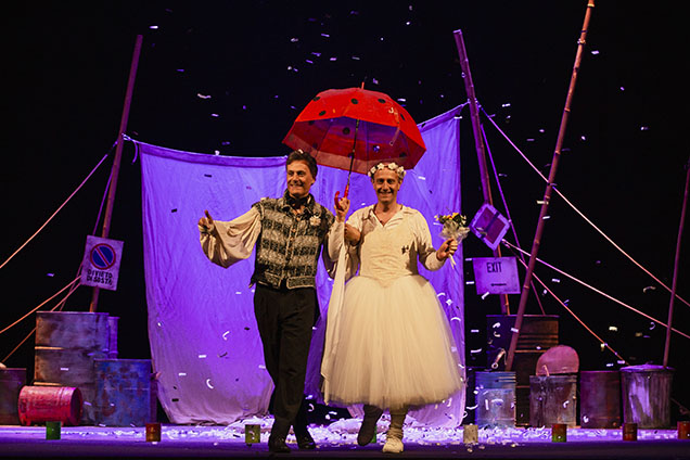 Rivali e complici allo stesso tempo, non si rendono conto che, sul palcoscenico, non riescono neanche a dissimulare i loro rapporti personali fatti di invidie, ripicche, alleanze, riappacificazioni. Presi singolarmente, sembrano avanzi di teatro, messi insieme, formano una compagnia tragica involontariamente comica che nonostante tutto riesce a far vincere su ogni cosa la storia dei due amanti e anche a far commuovere. Nella loro goffaggine traspare una verità che insinua un forte dubbio ovvero che, in questa vicenda, più di chiunque altro, sono proprio loro quelli… nati sotto contraria stella.