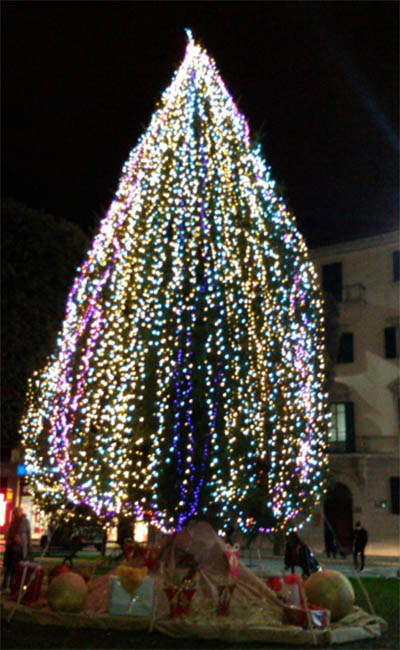 Dopo le luci accese nella rotatoria tra via Benedetto da Maiano, via Leonardo da Vinci e via Duccio di Buoninsegna, presa a modello dal vicesindaco Gianfrancesco Gamurrini per dimostrare come l’amministrazione comunale abbia addobbato le rotonde cittadine, altro click, stavolta in centro, in piazza Guido Monaco, dove campeggia adesso, e resterà in funzione fino a domenica 6 gennaio, il gigantesco abete di Natale di 12 metri a beneficio dell’atmosfera di festa del periodo natalizio.
