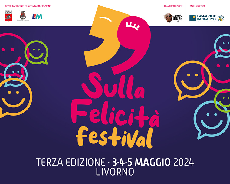 Tre giorni dedicati alla felicità in tutte le sue forme. Dal 3 al 5 maggio torna a Livorno “Sulla Felicità Festival”, la rassegna ideata e diretta dall’attore comico Stefano Santomauro, arrivata alla terza edizione. L’iniziativa è stata presentata dallo stesso Santomauro, presidente dell’associazione Grande Giove, che ha parlato di diritto alla felicità 360° e di come il tema verrà declinato attraverso numerosi appuntamenti.