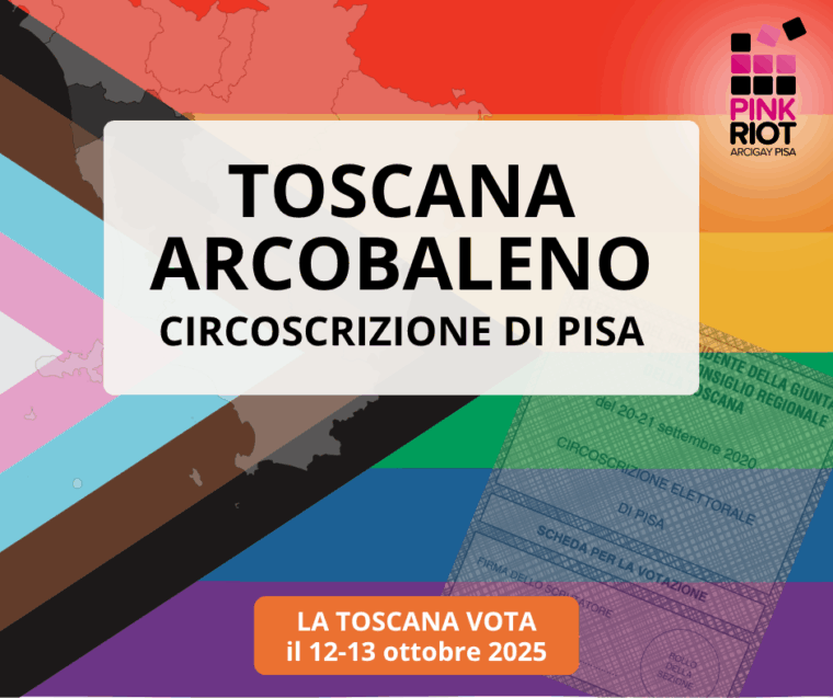 In vista delle elezioni regionali del 12 e 13 ottobre 2025, Pinkriot Arcigay Pisa rivolge un appello pubblico a tuttə lə candidatə della circoscrizione pisana, invitandolə a sottoscrivere un impegno concreto per la tutela dei diritti, della salute e del benessere delle persone LGBTQIA+.