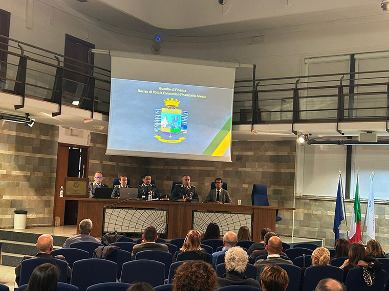 Martedì 21 ottobre, alla Borsa Merci in Arezzo, si è svolto un interessante convegno organizzato dall’Ordine dei Dottori Commercialisti e degli Esperti Contabili di Arezzo in collaborazione con il Comando Provinciale della Guardia di Finanza di Arezzo, sul tema “Antiriciclaggio: gli obblighi dei professionisti e le ispezioni della Guardia di Finanza”. Il presidente dell’Ordine Roberto Tiezzi ha aperto i lavori introducendo la normativa e passando la parola al Colonnello Walter Mazzei, Comandante Provinciale della Guardia di Finanza di Arezzo, il quale ha sottolineato l’importante ruolo del commercialista quale “sentinella” di legalità.